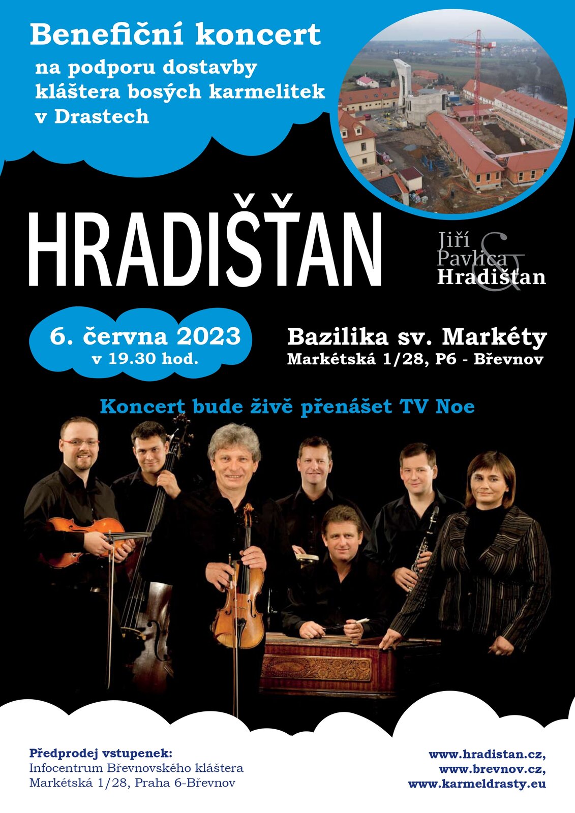 rády bychom Vás i Vaše blízké pozvaly na benefiční koncert Hradišťanu, který se uskuteční v úterý 6. června v bazilice sv. Markéty na Břevnově - podrobnosti naleznete na přiloženém plakátu. Předprodej vstupenek začíná 30. dubna. Jelikož mnozí to mají do Prahy daleko, zveme případně ke sledování koncertu na TV Noe, která ho bude živě přenášet.