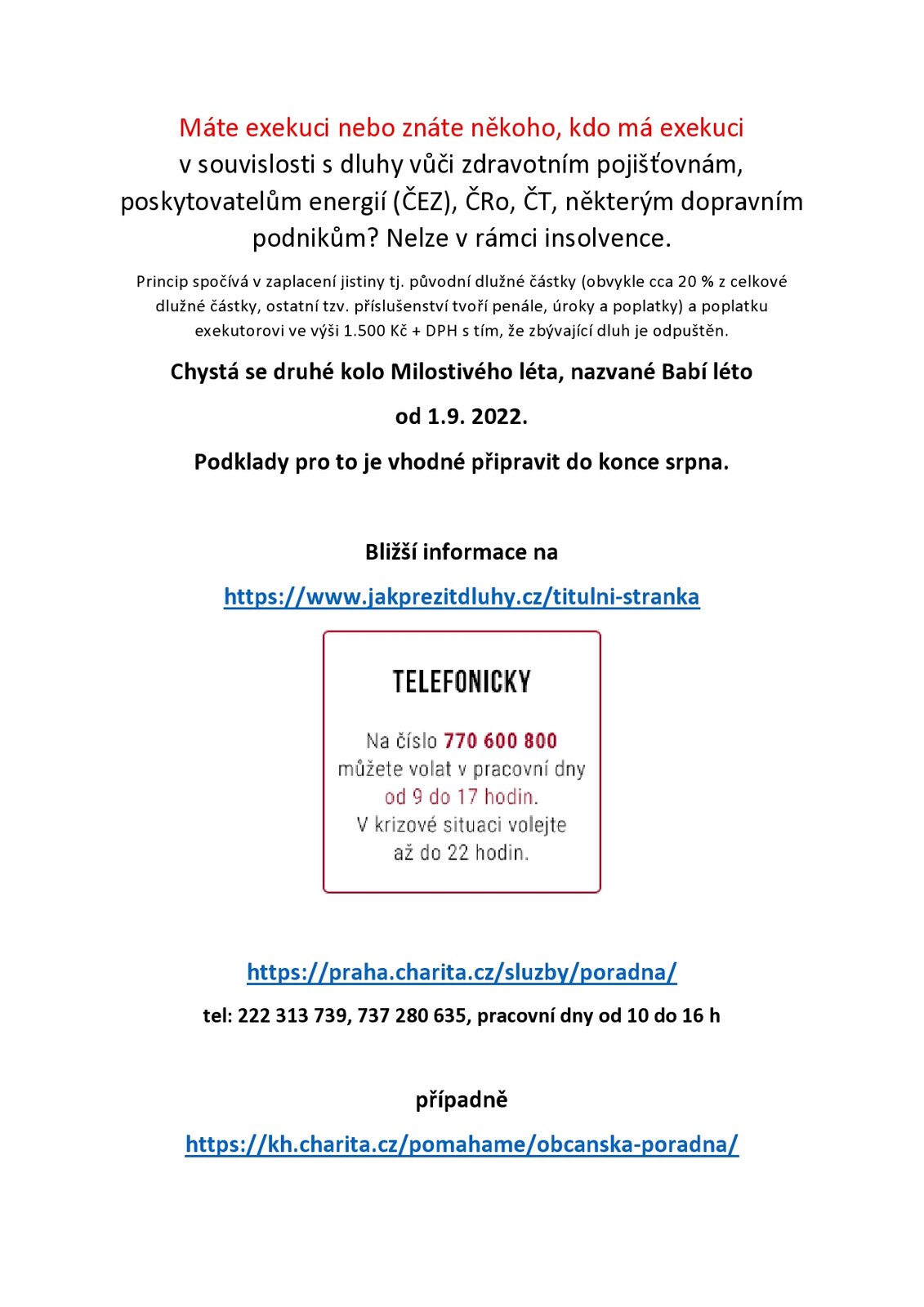 Charita má být znamením Boží lásky, připomněl nám arcibiskup Jan Graubner při nedávném setkání slova papežské encykliky. V Arcidiecézní charitě Praha mám na starosti komunikaci s dárci a dobře vím, že osudy některých z vás jsou skutečným znamením Boží lásky. Umíte totiž dávat nezištně navzdory tomu, že jste často sami zasaženi těžkým osudem. O to víc si vážíme vaší podpory. Zvlášť v dnešní době, kdy jsme paralyzováni strachem z budoucnosti. Přeji nám všem, abychom byli tímto znamením Boží lásky navzdory těžkostem, které musíme řešit. A těším se na setkání s mnohými z vás na konci října na benefičním koncertě v Obecním domě!