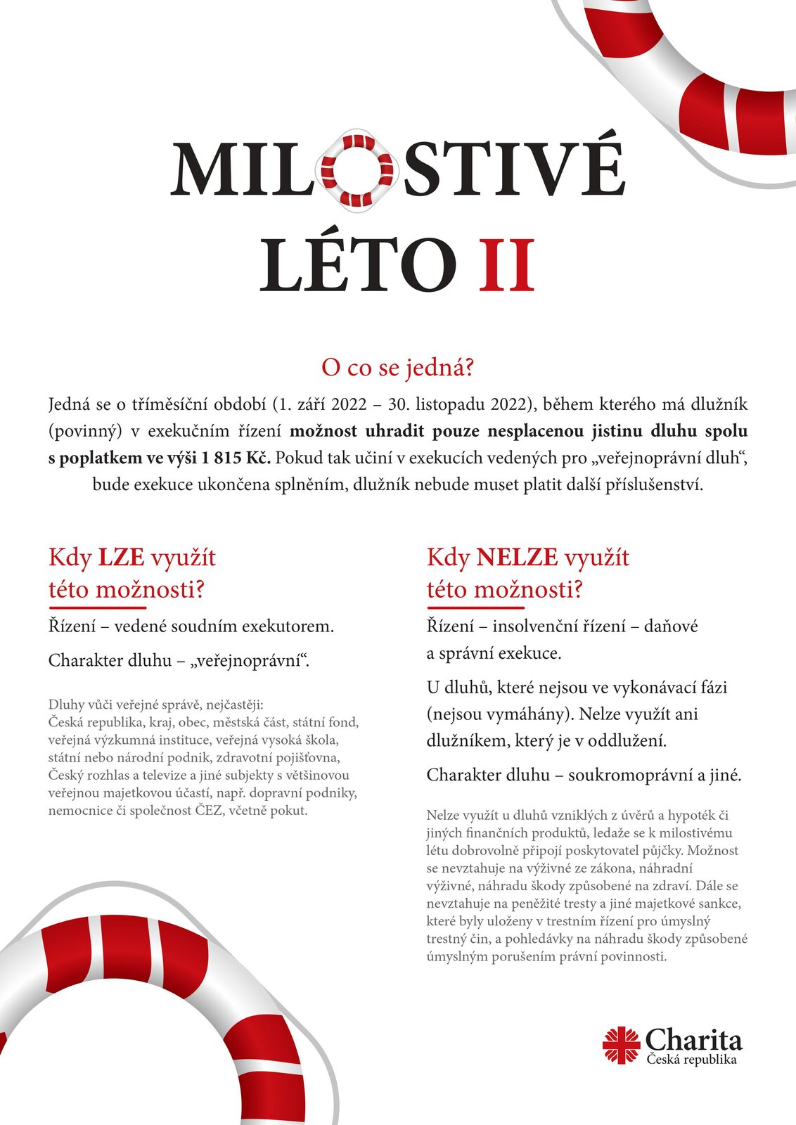 Charita Česká republika pomáhá již celé jedno století. Potřebné provázíme na cestě životem od bezbranného dětství až do bezmocného stáří. Hnacím motorem je pro nás bezpodmínečná láska k lidem, která je zároveň naší největší přidanou hodnotou. Neúnavně překonáváme překážky a hledáme nové způsoby, jak pomáhat. Nikdy se nevzdáváme a vše děláme z lásky k lidem.